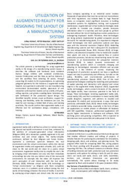 The article presents a methodology for using augmented reality in the design of a manufacturing system layout. It describes the software and hardware tools Autodesk Factory Design Utilities with AutoCAD Architecture, Inventor Professional, and 3ds Max, as well as HoloLens 2 and the workflow from selecting 3D assets, through converting 2D models to 3D representations, to optimizing polygonal geometry for the HoloLens 2 augmented reality headset. An experiment conducted in a real manufacturing environment demonstrated realistic placement of and interaction with machine models such as a lathe, drill press, milling machine, and grinder enabling faster iterations and safe verification of the production layout design. The identified benefits include visual verification, support for training, and flexibility, while the limitations are cost, the need for user training, a limited field of view, and tracking sensitivity. The results confirm that augmented reality is an effective tool for workstation design, simulations, and training.