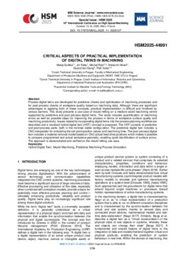 Process digital twins are developed for predictive checks and optimisation of machining processes and for post-process checks of workpiece quality based on machining data. Although there are significant advantages to applying both of these concepts, practical implementation is difficult and hindered by various barriers. This study presents a use case of mould milling on a medium-sized machining centre supported by predictive and post-process digital twins. The study includes quantification of machining errors as well as possible steps for improving the process in terms of workpiece surface quality and machining productivity. Issues related to incorporating digital twins into the process planning workflow are described and a resultant hybrid digital twin (HDT) concept is proposed. The HDT consists of predictive and post-process parts, both in the minimal viable configuration. The predictive digital twin includes a CNC interpolator for simulating the set-point position values and machining time. The post-process digital twin includes a material removal model based on CNC actual feed drive positions which makes it possible to compare programmed and actual workpiece geometry, enabling quick identification of surface errors. The approach is demonstrated and verified on the mould milling use case.