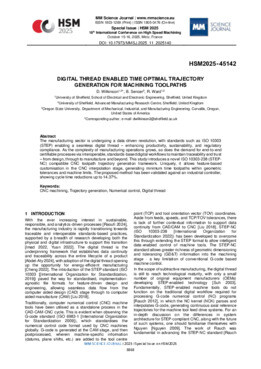 The manufacturing sector is undergoing a data-driven revolution, with standards such as ISO 10303 (STEP) enabling a seamless digital thread – enhancing productivity, sustainability, and regulatory compliance. As the complexity of manufacturing operations grows, so does the demand for end-to-end certifiable processes via interoperable, standards-based digital workflows to maintain traceability and trust – from design, through to manufacture and beyond. This study introduces a novel ISO 10303-238 (STEP-NC) compatible CNC toolpath trajectory generation framework. Uniquely, it allows feature-based customisation in the CNC interpolation stage, generating minimum time toolpaths within geometric tolerances and machine limits. The proposed method has been validated against an industrial controller, showing cycle time reductions up to 14.37%.
