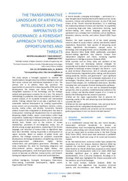 This study adopts a foresight approach to examine the transformations brought about by Artificial Intelligence (AI) and their social, cultural, and institutional implications in Iran. The primary aim is to address three key questions: the opportunities AI presents for enhancing quality of life and social development; the threats and harms arising from the unregulated expansion of this technology; and the strategic outlook and governance scenarios for AI in Iran. The research methodology is qualitative, descriptive-analytical, and based on content analysis of 33 reputable domestic and international articles. Findings indicate that AI can play a significant role in sustainable national development by creating opportunities across sectors such as education, healthcare, industry, culture, security, media, ethics, and identity. Conversely, thematic analysis reveals that unregulated AI development may lead to consequences including job displacement due to automation, deepening digital divides, power concentration within large corporations, weakening of national sovereignty in cyberspace, and disruption of decision-making systems. At the cultural and identity level, threats such as the erosion of human relationships, promotion of non-indigenous values, loss of identity among younger generations, weakening of the Persian language, and reduction of human ethics to algorithmic logic have been identified, making responsible AI development an urgent necessity. Based on analysis of global trends and patterns, five strategic scenarios are proposed: responsible development, technology localization, strengthening university-industry-government collaboration, digital literacy enhancement, and participatory governance. Ultimately, the study emphasizes the need for developing indigenous and ethics-centered policies, improving digital literacy, and establishing participatory, multi-level governance structures to ensure AI becomes an effective, human-centric, and forward-looking tool aligned with Iran’s cultural and social objectives.