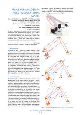 The article deals with the design of an educational robot consisting of three parallelogram mechanisms. Such a type of robot automatically ensures the parallelism of the end point position with the initial end point position. This is important, for example, when manipulating loose or liquid materials. A simulation model is solved and subsequently a hardware prototype is created for experimental work by students.